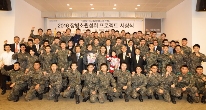 국방부와 공동주최하는'2016 장병 소원성취 프로젝트'는 올해로 7번째를 맞이하는 KB국민은행의 대표적인 유스마케팅 행사로 대한민국 군 장병이 꼭 이루고 싶은 소원을 사연과 함께 응모하면 심사를 통해 소원을 이루어주는 프로그램이다.