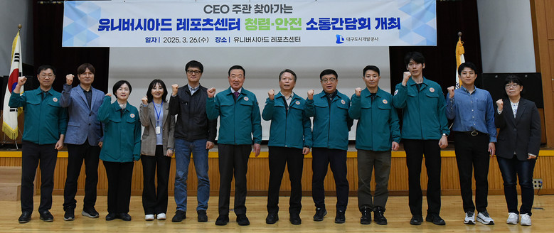 [대구 세계타임즈=한윤석 기자] 대구도시개발공사는 지난 3월 26일(수) 유니버시아드 레포츠센터(이하 센터)에서 ‘CEO주관 청렴·안전 소통 간담회’를 개최하고, 센터 직원들과 소통하는 자리를 마련했다.
