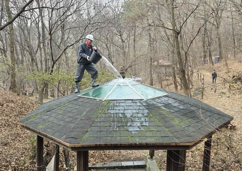 이번 정비는 낙엽이 빗물과 함께 비가림막 상단 및 취수구 주변에 쌓이면서 배수 저해, 미관 저하, 시설물 손상 위험 등이 증가함에 따라 진행되었다. 특히 비가림막 상부에 쌓인 낙엽을 제거하고, 취수구 틈 사이의 오염물과 먼지를 세척해 이용객이 보다 쾌적하게 약수터를 이용할 수 있도록 환경을 정비하는 데 중점을 뒀다.