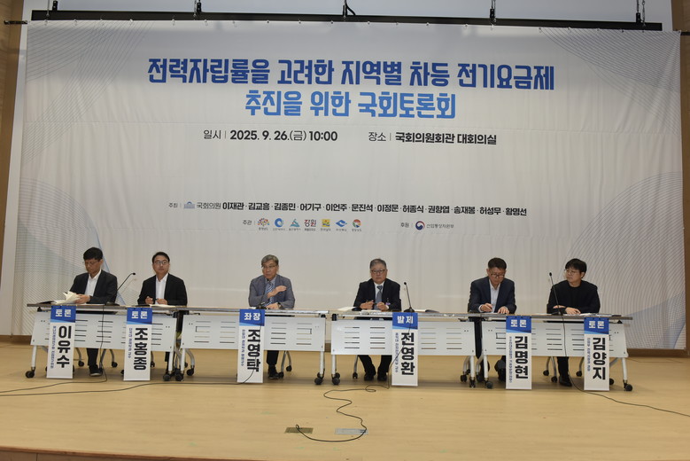 참석자들은 전력 자립률이 높은 도와 전남·인천 등이 대규모 발전시설로 환경적·사회적 부담을 지고 있음에도 동일 요금을 적용받는 불합리성을 지적하고, 차등 전기요금제가 에너지 형평성 확보와 국가 전력망 안정화에 기여할 수 있다는 데 공감했다.