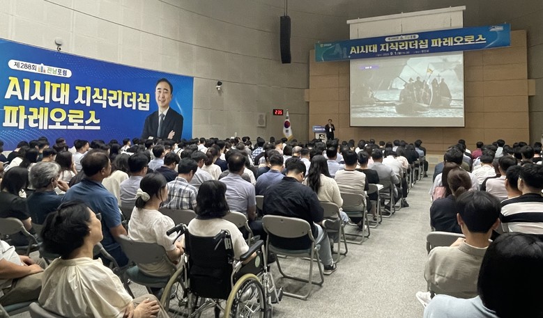 [전남 세계타임즈=우덕현 기자] 전라남도는 1일 도청 왕인실에서 임문영 미래전환 대표를 초청해 ‘AI시대의 지식 리더십, 파레오로스’를 주제로 제288회 전남포럼을 개최했다.