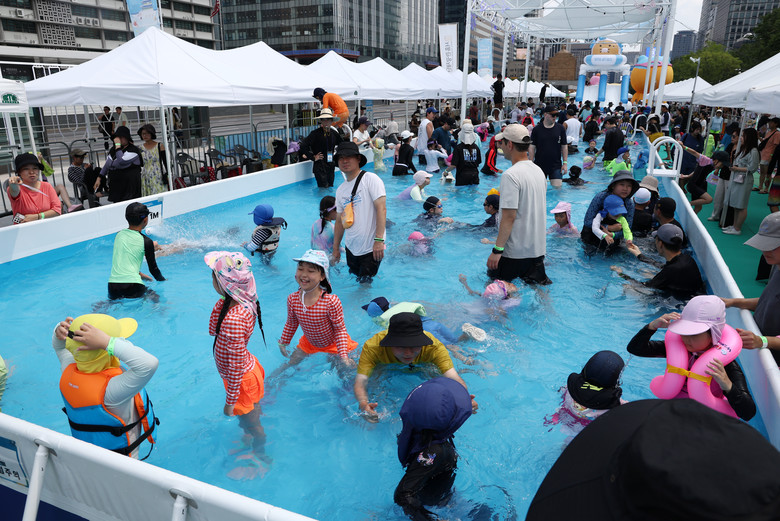 [세계타임즈 = 이장성 기자] 11일 오후 서울 광화문에 운영중인 2024 서울썸머비치에서 시민들이 즐거운 시간을 보내고 있다.