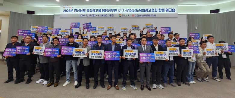 - 현장 의견 반영해 교육 내용 한층 내실화…민관 협력체게 강화 [세계타임즈=경남 최성룡 기자] 경상남도는 옥외광고 행정 역량 강화를 위해 3월 23일부터 24일까지 사천 KB인재니움에서 ‘2026년 옥외광고물 담당 공무원 및 유관기관 합동 워크숍’을 개최했다고 밝혔다.