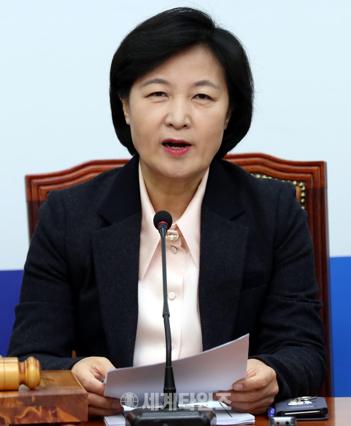 추미애 더불어민주당 대표가 20일 서울 영등포구 여의도 국회 더불어민주당 당대표회의실에서 진행된 최고위원회의에서 모두발언을 하고 있다. 2017.11.20.
