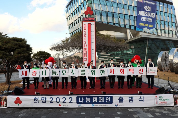 희망 2022 나눔캠페인은 1일부터 내달 1월 31일까지 총 62일간 진행되며 모금 계좌(농협 301-0127-0335-01)와 정기기부, 읍면동 행정복지센터 등을 통해 참여할 수 있다.