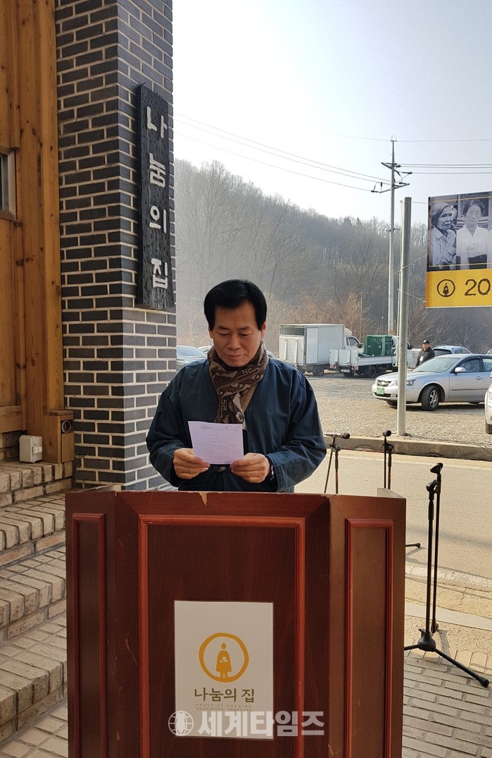 [세계타임즈 심귀영 기자]나누고 베풀고 봉사하는 그룹 한옥순 회장은 제100주년 3ㆍ1절을 맞아 경기도 광주의 일본군 ‘성노예’ 피해 할머니들의 쉼터 나눔의 집(원장 원행) 집을 방문해3·1 운동 100주년 기념식과 함께 일본군 ‘성노예’ 피해자 추모제 일본군 ‘성노예’ 문제를 해결하기 위해 노력하고 있는 각 관계부처, 유가족, 후원자, 자원봉사자 등과 행사 참석과 함께 해가 지날수록 건강이 악화되고, 기력이 떨어져 가는 성노예 피해자 할머니들의 필요 물품"안심 깔개 매트, 물티슈, 의상"등을 김무연 Gs안과 대표원장 성정민 (주) 벨라랩 대표 후원으로사랑과 정성으로 준비해 전달하고 일본군 위안부 역사관 전시장을 둘러보고나눔의 집 추모공원에서 참배, 추모 나비 달기 등 행사를 가졌다.