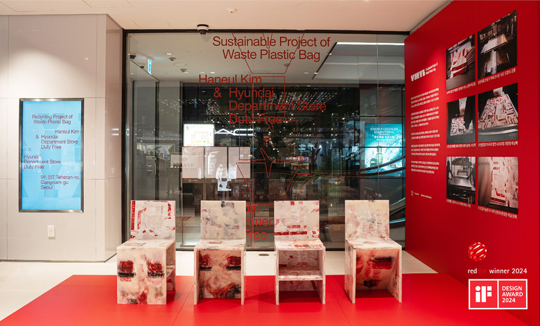 이번에 수상한 전시 프로젝트 비닐은 지난해 7월부터 10월까지 현대면세점 무역센터점에서 진행한 친환경 업사이클링 전시다. 면세점에서 더 이상 사용하지 않는 비닐 쇼핑백 재고를 활용해 소파, 파라솔, 비치볼, 튜브, 의자 등 다양한 오브제와 가구로 재탄생시켰다. 이번 수상으로 전시 프로젝트 비닐은 지난 3월 iF 디자인 어워드 수상에 이어 2관왕을 달성했다.