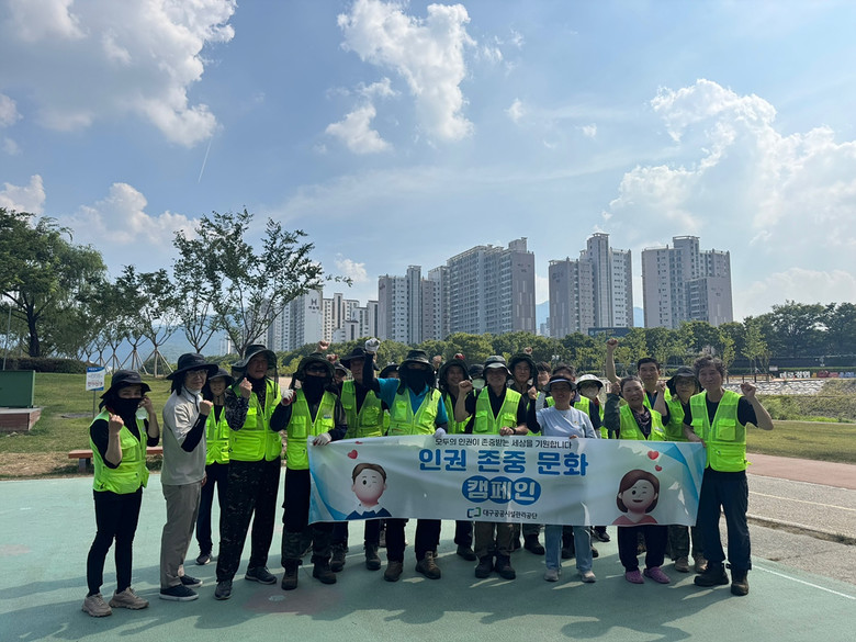 ▸ 인권침해 등 올바른 조직문화 선도 및 인권경영 실천 다짐 [세계타임즈=대구 한윤석 기자] 대구공공시설관리공단(이사장 문기봉)은 7월 2일(수)부터 15일(화)까지 2주간 ‘인권경영 캠페인 주간’으로 지정하고, 전 사업소가 참여하는 인권문화 확산 캠페인을 전개했다.