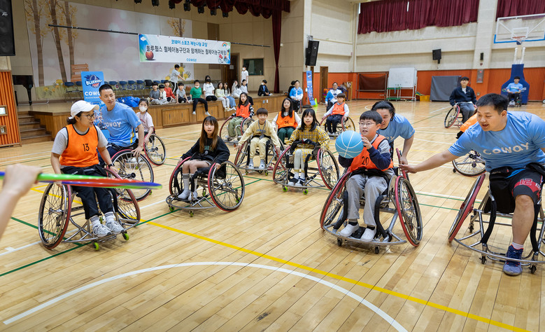 ‘코웨이 블루휠스 휠체어농구 체험교실’은 코웨이 휠체어농구단의 재능기부 활동 일환으로 어린이 및 청소년을 대상으로 장애 인식 개선과 장애인 스포츠에 대한 이해도를 높이기 위해 마련한 프로그램이다.