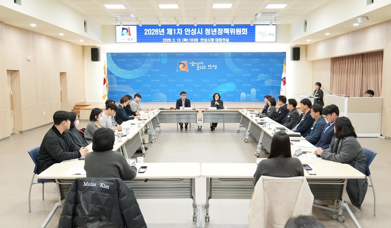 [안성시 세계타임즈=송민수 기자] 안성시는 2월 12일(목) 오후 4시, 시청 4층 대회의실에서 2026년 제1차 안성시 청년정책위원회를 개최했다. 이날 회의에는 청년정책위원 20명이 참석해 「2026년 안성시 청년정책 시행계획(안)」을 심의·의결하고, 청년정책분과위원회 정책제안 검토결과와 2026년 청년정책실험실 운영방향을 논의했다.