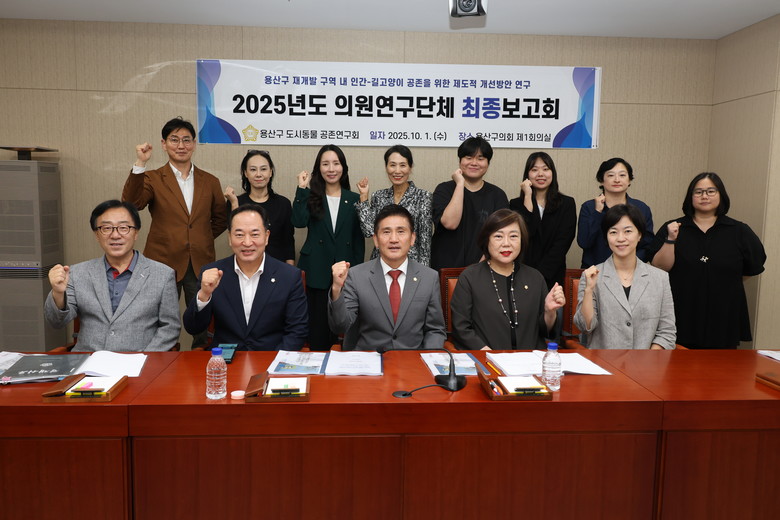 이번 최종보고회에는 ▲용산구 도시동물 공존연구회 (대표의원 이인호) ▲용산비전기획 (대표의원 황금선) ▲서울시 용산구 지속가능한 폐기물 처리방안 연구회 (대표의원 이미재) 등 총 3개의 의원연구단체가 참여했다.