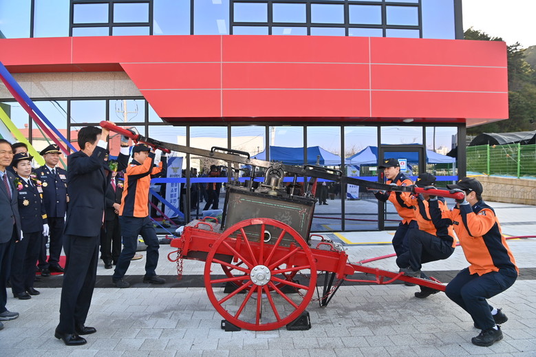 이날 준공식은 식전 축하공연과 홍보영상 상영, 경과 보고, 유공자 표창, 테이프 커팅식, 완용소방펌프 시연 등의 순으로 진행했다.