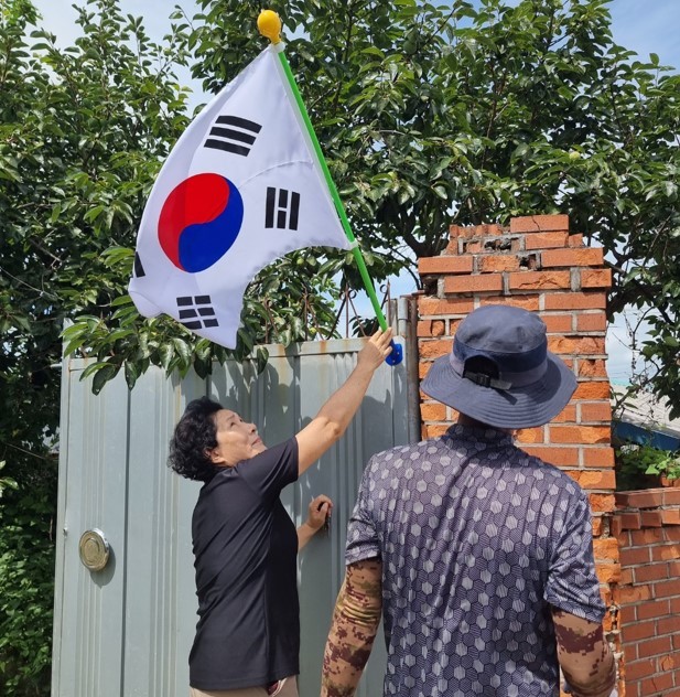 성송면은 태극기 30개를 준비해 태극기 미보유 세대와 고령자 세대의 설치와 게양을 지원했다.