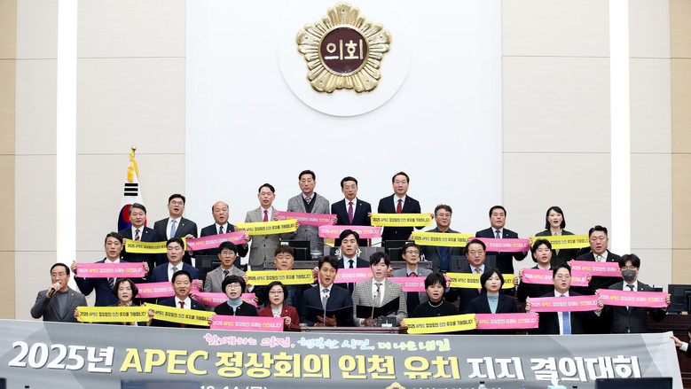 14일 인천시의회에 따르면 지난달 30일과 이달 13일 각각 상임위를 거친 ‘2025 APEC 정상회의’인천 유치 촉구 결의안과 유치 특별위원회 구성 결의안이 본회의를 통과했다.