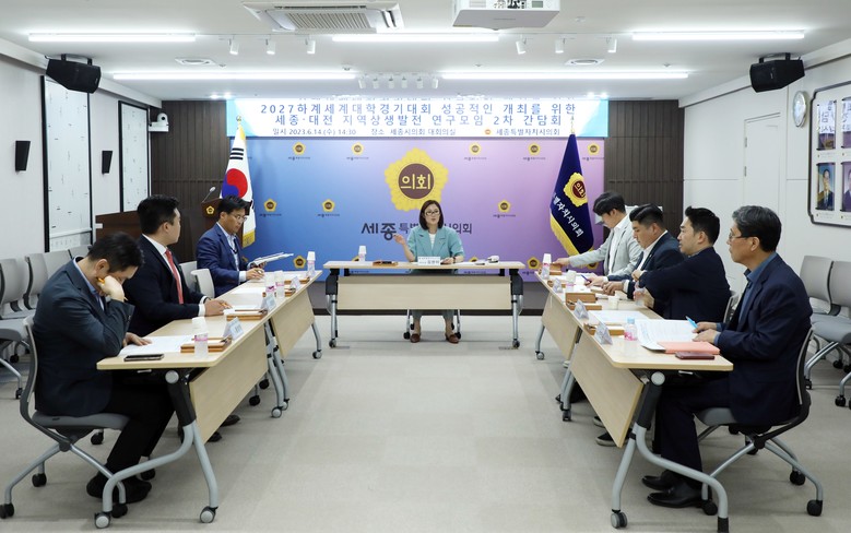 [세종 세계타임즈=이채봉 기자] 세종특별자치시의회 「2027 하계세계대학경기대회의 성공적인 개최를 위한 세종·대전 지역상생발전 연구모임(대표의원 김현미)」은 14일 세종시의회 대회의실에서 2차 간담회를 개최했다.