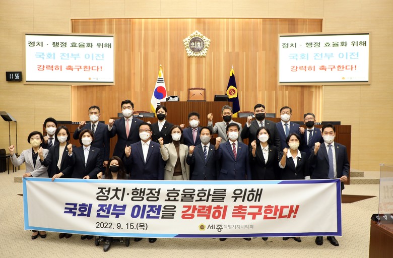 이번 결의안에는 입법부와 행정부의 이원화에 따른 비효율을 해소하고, 세종특별자치시가 국가 균형발전을 선도하는 행정수도로 거듭날 수 있도록 국회의사당 전부 이전을 촉구하는 내용이 담겼다.