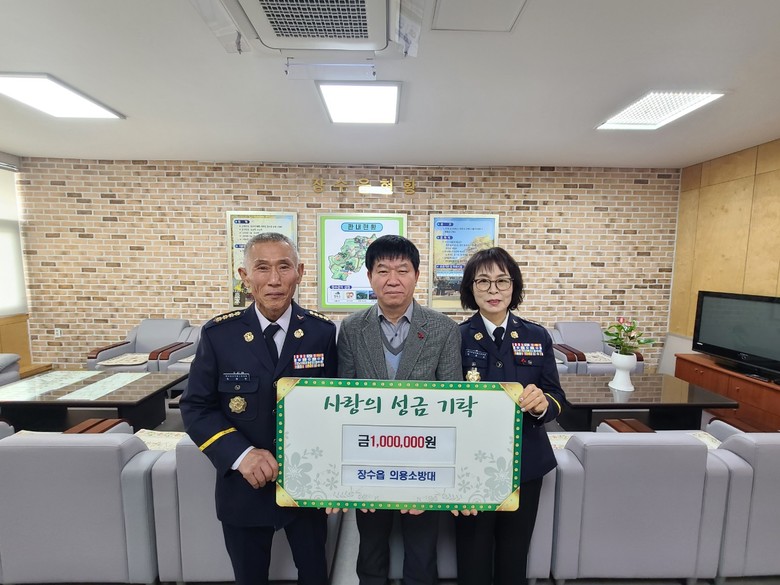장수읍 남·녀의용소방대(대장 조장현, 임금순)는 지난 16일 “우리 주변 도움이 필요한 이웃들을 위해 사용해 달라”며 성금 100만원을 기탁했다.