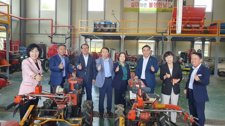 | ▲ 사진 좌측부터 박종필 부위원장, 권기훈 위원, 조경구 위원, 하병문 위원, 이태손 위원장, 윤권근 위원, 오명숙 대구농업기술센터 소장,신회용 군위군 농업기술센터 소장 |