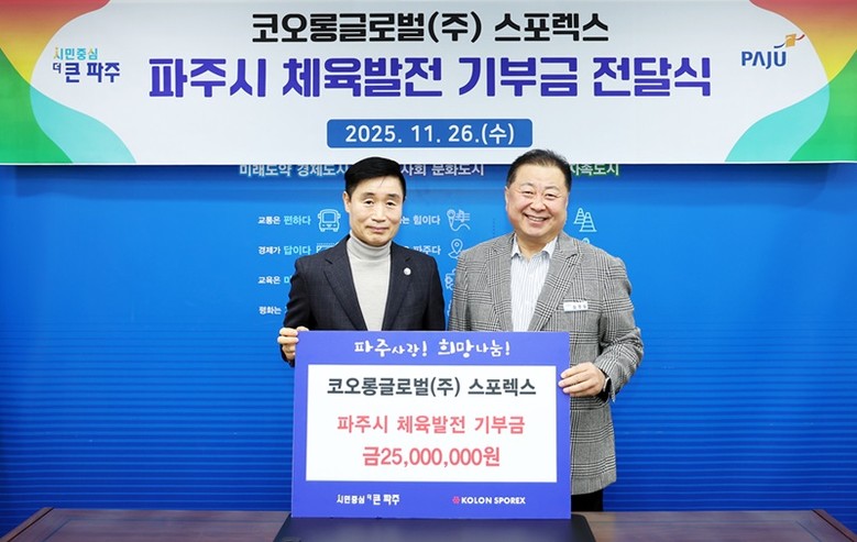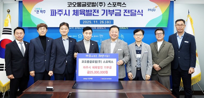 파주시, 코오롱글로벌㈜부터 체육발전 기부금 2천5백만 원 전달받아