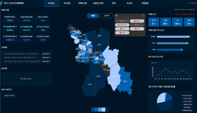 [용인시 세계타임즈=송민수 기자] 용인특례시(시장 이상일)는 사물인터넷(IoT·Internet of Things) 센서와 폐쇄회로(CC)TV를 스마트시티 통합 플랫폼에 연계한 재난 대응 시스템을 구축했다고 14일 밝혔다.