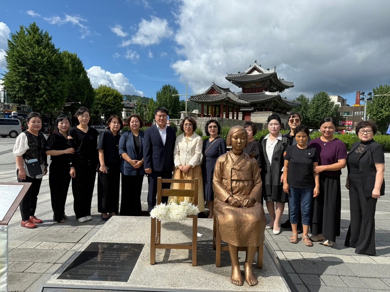- 시민사회단체, 여성단체, 시민들과 함께하며 평화와 추모의 뜻 나눠 [세계타임즈=전주시 신승민 기자] 전주시는 ‘제80회 광복절’을 앞둔 14일 풍남문광장 평화의 소녀상에서 위안부 피해자의 아픔을 위로하며 추모하는 헌화 행사를 열었다.