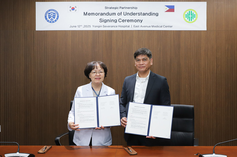 | ▲지난 12일 용인세브란스병원 5층 대회의실에서 진행된 용인세브란스병원과 필리핀 이스트 애비뉴 메디컬 센터(East Avenue Medical Center)의 MOU 체결식에서 김은경 병원장(왼쪽)과 알폰소 G.(사진=용인세브란스병원) |