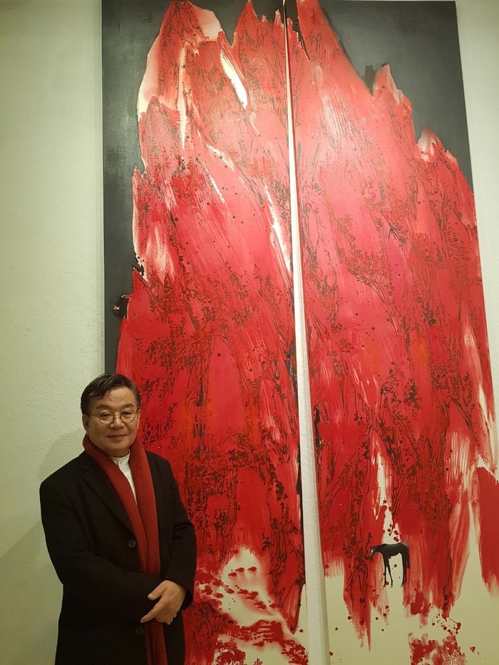 또 “명상은 바쁘게 살아가는 현대인에게 꼭 필요한 요소다”라고 강조하는 작가의 작품에선 채색과 여백미에서도 명징하게 다가온다. 자연 전체에 배색 처리된 초록색과 녹색, 그리고 붉은 색. 초록색 계통은 평화와 여유로움, 안식 등을 그리고 에너지가 느껴지는 붉은 색은 어느새 관람객에게 기운을 북돋아주면서 한층 깊은 상상의 세계로 빠져들게 만든다. 한마디로 침잠과 명상 그리고 새로운 기운을 맛보게 된다.