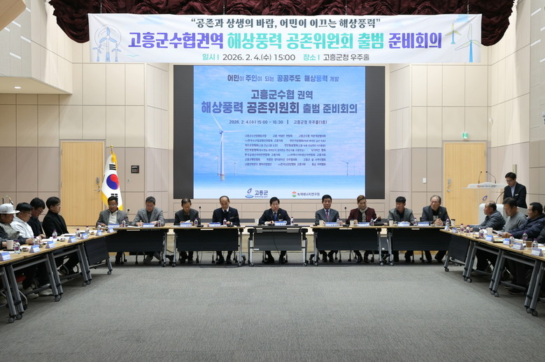 군은 4일 군청 우주홀에서 공영민 군수를 비롯해 이홍재 고흥군수협장, 어민 대표위원 등 90여 명이 참석한 가운데 ‘고흥군수협 권역 해상풍력 공존위원회 출범 준비회의’를 개최했다.