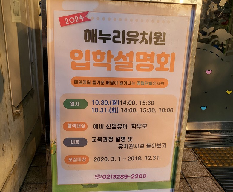 [광명시 세계타임즈=송민수 기자] 경기도 광명 소재 해누리유치원(원장 심현미)에서는 10월 30일(월) ~ 10월 31일(화)에 2024학년도 해누리유치원 입학을 원하는 가족들을 대상으로 ‘해누리 유치원 시설개방의 날’을 실시하였다.