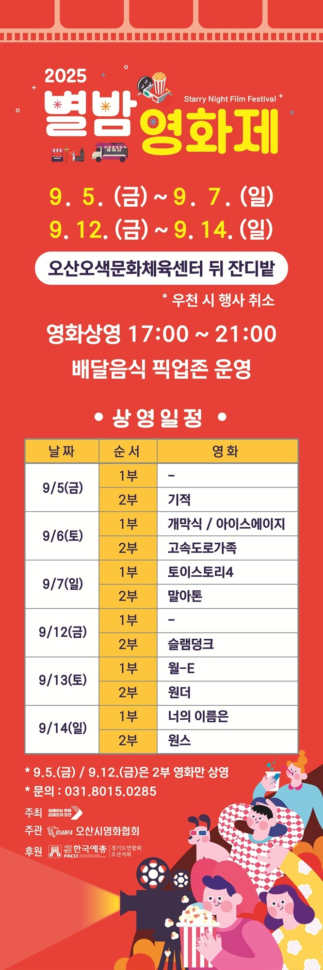 시 관계자는 “도심 속 자연과 문화가 어우러지는 오산천에서 열리는 이번 영화제가 시민들에게 작은 힐링의 시간이자 특별한 문화 경험이 되기를 바란다”고 전했다.