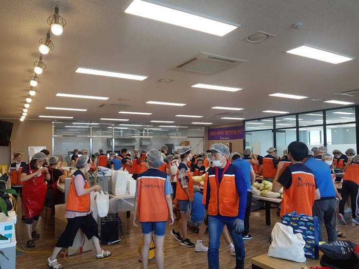 유희자 나눔봉사단장은 ”더운 날씨에도 따뜻한 사랑을 실천하고 계시는 100명의 자원봉사자분들께 감사함을 전한다.“고 말했다.