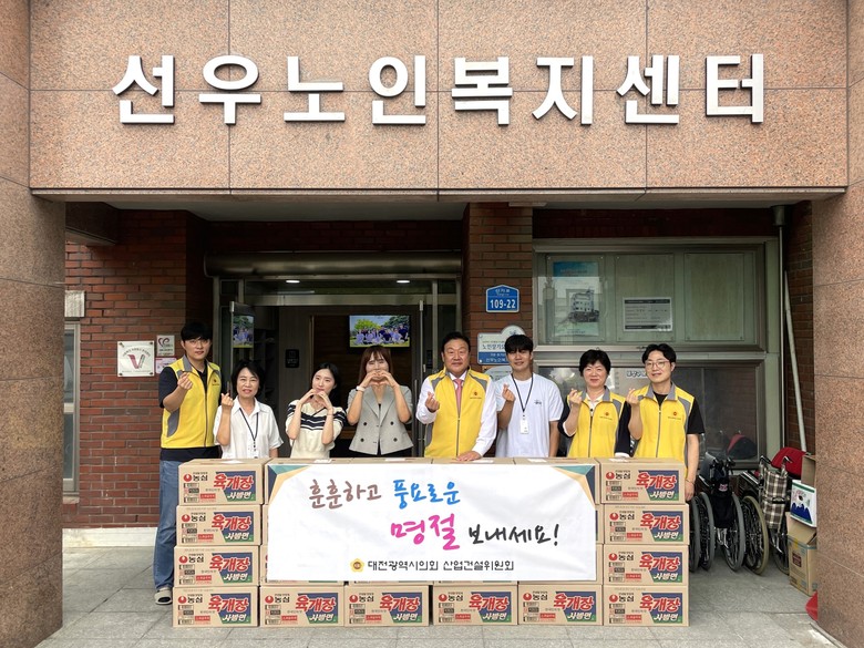 [대전 세계타임즈=이채봉 기자] 대전시의회 송인석 산업건설위원장(국민의힘, 동구1)은 추석 명절을 앞두고 6일 동구에 위치한 선우노인복지센터(센터장 김미애)를 방문하여 위문품을 전달했다.