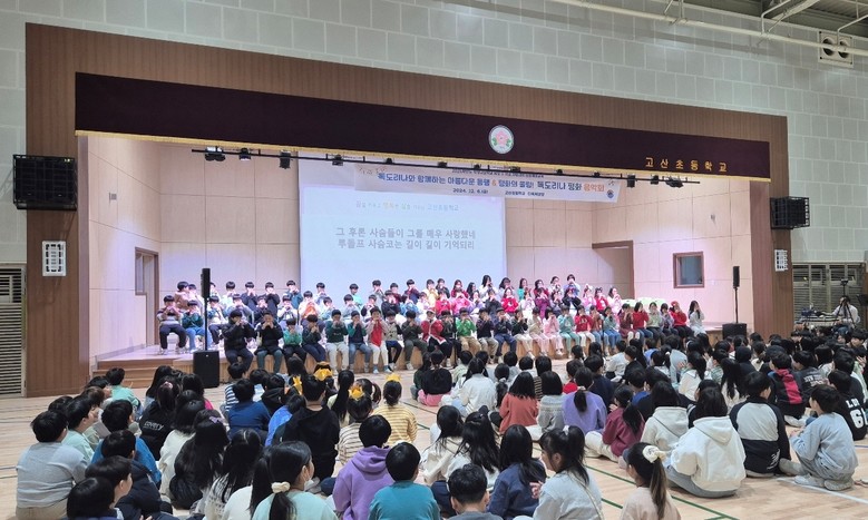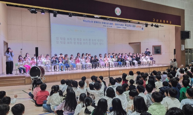 [의정부시 세계타임즈=송민수 기자] 고산초(교장 박경례)는 12월 6일(금) 2024학년도 적정규모학교 육성 및 학교 자율과제 문화예술교육으로 활발하게 운영하고 있는 ‘독도리나와 함께하는 아름다운 동행! 고산초 평화음악회’를 개최하여 교육공동체의 관심과 이목을 끌었다.