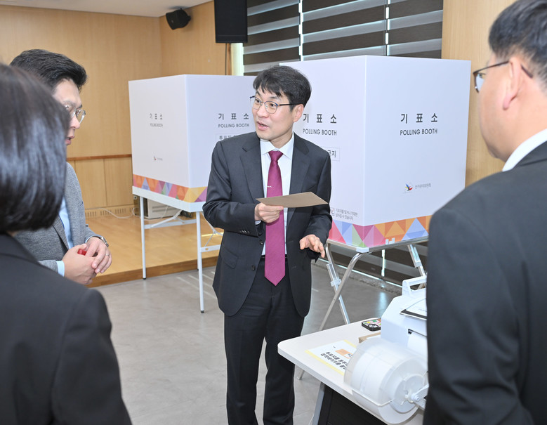 김정기 권한대행은 사전투표과정을 직접 시연하며 모바일 주민등록증을 활용한 신분증 확인, 투표용지 발급 등 진행과정을 꼼꼼히 점검했다.