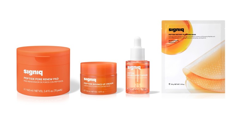 시그닉 플럼핑 펩타이드 라인은 △피부 탄력을 빠르게 케어해 주는 ‘바운스 업 크림’ △주름과 탄력을 한 번에 관리해 주는 ‘더블 이펙트 세럼’ △모공 속 노폐물을 케어해 매끈한 피부 결을 완성해 주는 ‘포어 리뉴 패드’ △눈가·팔자·이중턱 라인 등 피부의 윤곽을 잡아주는 ‘인스턴트 플럼핑 마스크’ 등 총 4가지 제품으로 구성됐다.