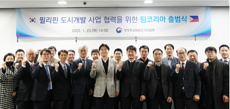 2025년 1월 23일 김형렬 행복청장(중앙 왼쪽)이 팀코리아에 참여하는 기관 및 기업 관계자들과 기념사진을 찍고 있다.
