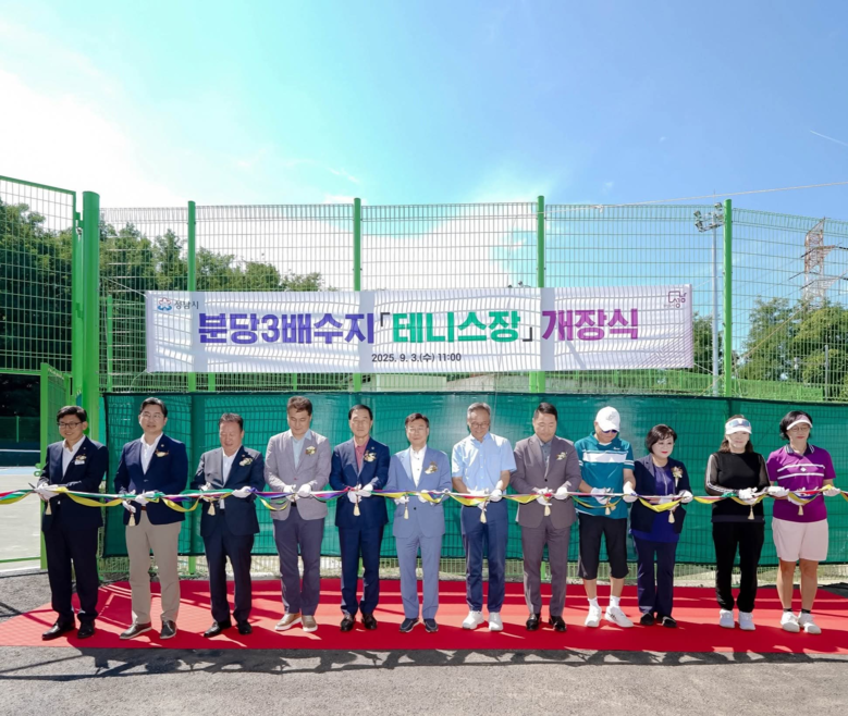 지난 3일 개장한 성남시 분당구 구미동에 있는 상수도 배수지 상부 유휴부지에 들어선 테니스장은 성남시가 1년 4개월간 사업비 7억 8천여만원을 투입해 조성한 것으로 아크릴 재질 바닥의 코트 2면과 선수 대기석 2곳, 심판대 2곳 등 최신 시설을 갖춘 공공체육시설이다.