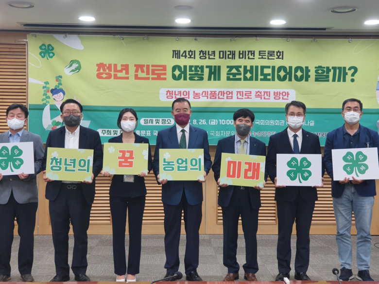 [세계타임즈 = 이채봉 기자] 국민의힘 홍문표 국회의원(충남 예산.홍성)이 주관하고 농촌진흥청(조재호 청장), 한국4-H본부(방덕우 회장), 전국대학 4-H연합회(김민경 회장)이 공동으로 주최한 ‘제4회 청년 미래 비전 토론회’가 8월 26일 국회의원회관 제2세미나실에서 개최했다.