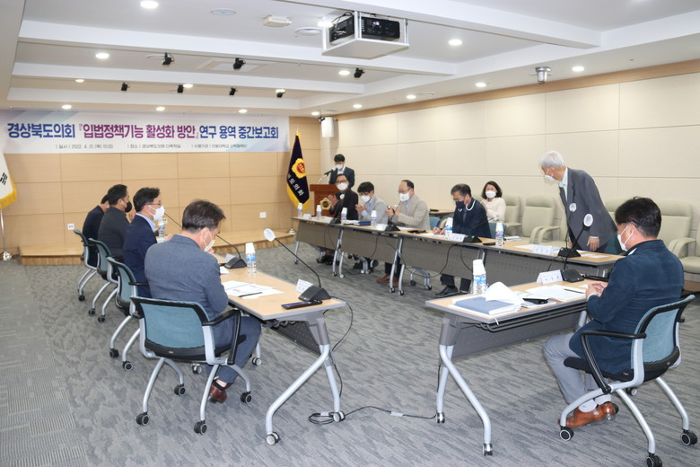 [경북=세계타임즈=한성국 기자] 경상북도의회(의장 고우현)는 21일 경북도의회 다목적실에서 ‘경상북도의회 입법정책기능 활성화 방안’ 연구용역 중간보고회를 개최했다.