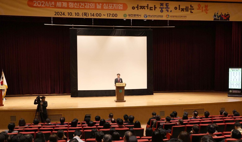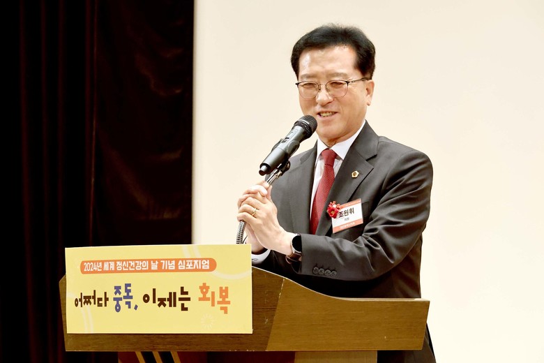 [대전 세계타임즈=이채봉 기자] 대전시의회 조원휘 의장은 10일 시청 대강당에서 열린 ‘2024년 세계 정신건강의 날 기념 심포지엄’에서 “대전시의회는 시민의 정신건강 증진을 위해 관련 조례들을 촘촘하게 연구하고 개정해 현실에 맞는 건강증진 방안을 마련하겠다”고 밝혔다. 이날 조 의장은 중독 문제의 사회적 심각성에 대해 경청하는 가운데 현대사회에서 가장 소중한 행복 비결은 정신과 마음의 건강이라는 의견에 공감을 피력했다.
