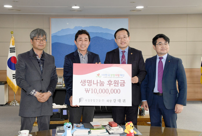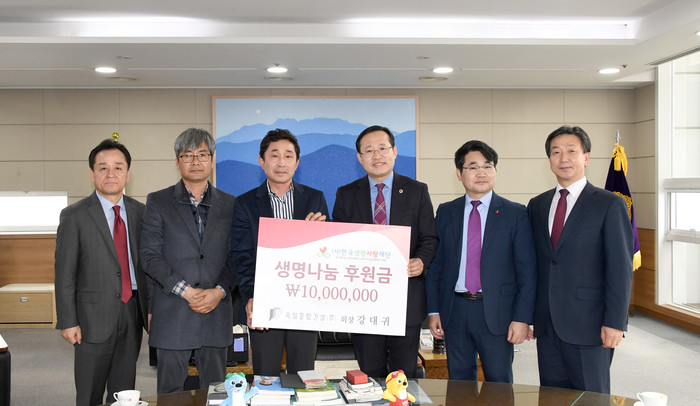 광주시의회에 따르면 ㈜욱일종합건설(회장 강대귀, 대표 김민우)은 김동찬 의장이 후원회장을 맡고 있는 사)한국생명사랑재단(이사장 김동화)에 장기이식 수술지원을 위한 후원금 1천만원을 전달했다.