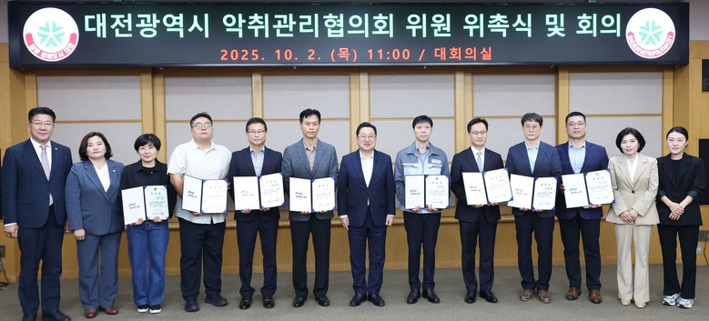 [대전 세계타임즈=이채봉 기자] 대전시는 10월 2일 시청 대회의실에서 ‘대전광역시 악취관리협의회 위촉식 및 회의’를 열고, 지역 악취 문제 해결을 위한 민·관 협력 기구를 공식 출범시켰다.