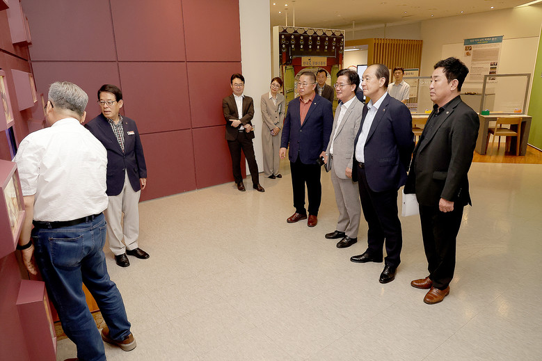 먼저 한국효문화진흥원을 방문해 업무보고 청취 후 진흥원에서 운영하는 전시실 등 시설을 돌아보며, 국내 유일의 효문화 체험·교육 및 전문연구기관으로서 전국적으로 효문화가 확산되어 많은 사람들이 효문화를 공감할 수 있도록 적극 노력해 주기를 주문했다.