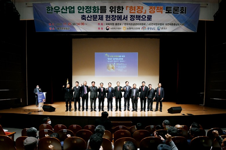 국내 축산1번지 홍성군 홍주문화회관에서 열린 토론회는 홍문표 국회의원과. 전국한우협회중앙회, 한우자조금관리위원회가 공동으로 주최했으며, 농림축산식품부, 농협축산경제, 충청남도, 홍성군이 후원하여 토론회가 마련되었다.