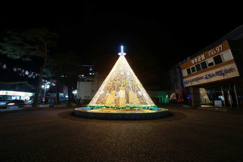 이날 점등식은 찬송과 기도(무주군 기독교 연합회 회장, 이상덕 목사), 황인홍 군수와 무주군의회 이해양 의장의 축사, 트리점등식 순으로 진행됐다.