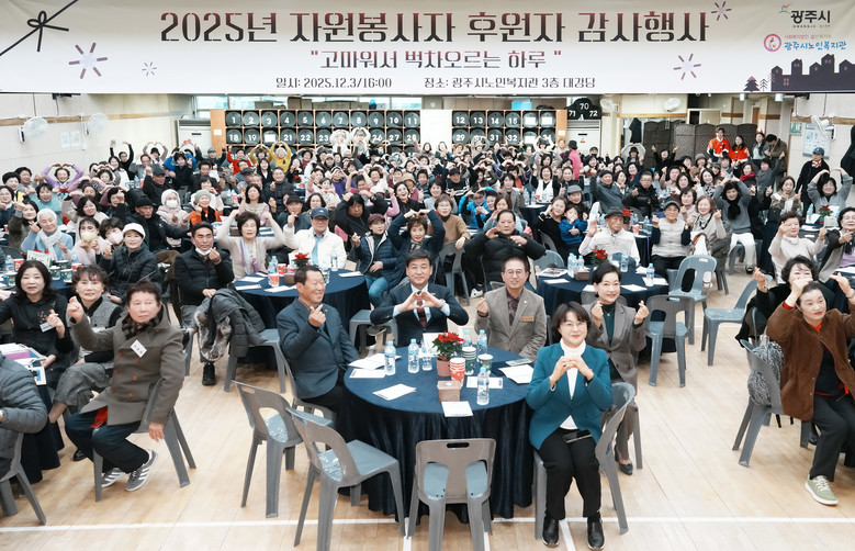 [세계타임즈=광주시 송민수 기자] 광주시노인복지관은 지난 3일 복지관 3층 대강당에서 ‘2025 자원봉사자·후원자 감사 행사, “고마워서 벅차오르는 하루’를 성황리에 개최했다.
