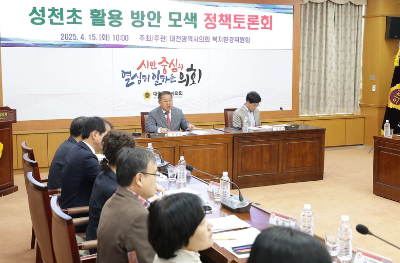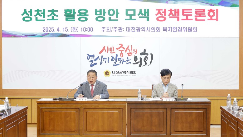 [대전 세계타임즈=이채봉 기자] 대전시의회는 15일 의회 소통실에서 이한영 의원(국민의힘, 서구6) 주재로 ‘성천초 활용 방안 모색 정책토론회'를 열고, 2027년 3월 폐교 예정인 대전성천초 부지를 지역 명품 복합공간으로 재탄생시키기 위한 방안을 논의했다.