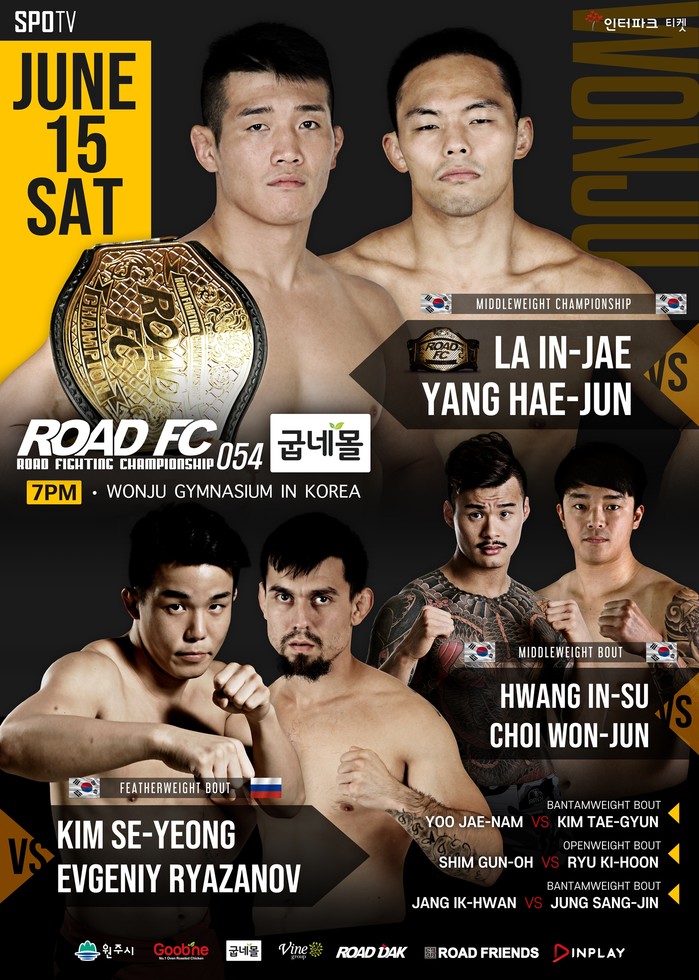 한편 ROAD FC(로드FC)는 6월 15일 원주 종합체육관에서 굽네몰 ROAD FC 054를 개최하기 전에 굽네몰 ROAD FC YOUNG GUNS 43을 먼저 연다.