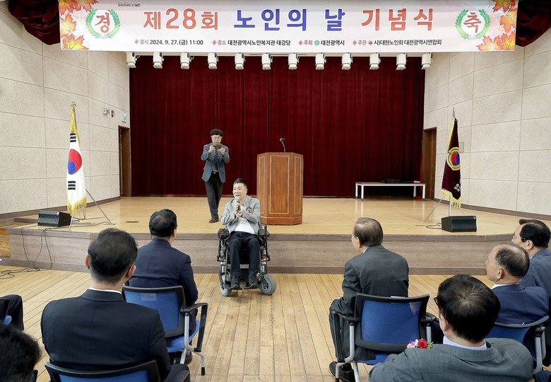 [대전 세계타임즈=이채봉 기자] 대전시의회 황경아 부의장은 27일 대전시노인복지관에서 개최된‘제28회 노인의날 기념행사’에 참석해 지금의 대전을 있게 한 어르신들의 헌신과 노고에 감사를 전하며 “어르신들이 살기 좋은 따뜻한 복지도시 대전을 위해 대전시의회가 앞장서 최선을 다하겠다”고 말했다.