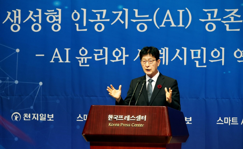 이상면 천지일보 대표이사는 인사말을 통해 “AI와 협업하며 공존하는 시대를 맞아 우리는 AI를 통해 보편적 가치를 실현하기 위해 어떤 윤리기준이 필요한지, 또 어떤 노력을 해야 하는지 고민해야 한다”고 밝혔다.